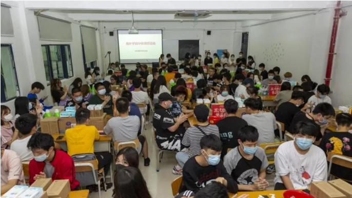 博饼,是闽南地区几百年来独有的中秋传统活动,是一种独特的月饼文化,也是对历史的一种传承。本次活动结合疫情防控的需要,为大家准备了纸巾、牙刷牙膏、洗手液、洗衣液、额温枪等实用的日常清洁防疫用品,希望同学们养成良好的卫生习惯。