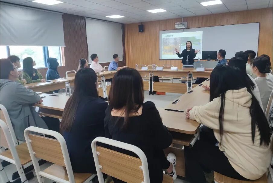 会谈结束后,来宾一行来到海外学院,大邱加图立大学国际交流处中国留学生负责人陈贞向海外学院的同学们介绍了大邱加图立大学的办学历史、学校规模、校园环境、学校成就以及入学指南、毕业条件等主要情况,并对同学们关心的问题进行了耐心解答,鼓励同学们继续努力,争取早日顺利完成学业。